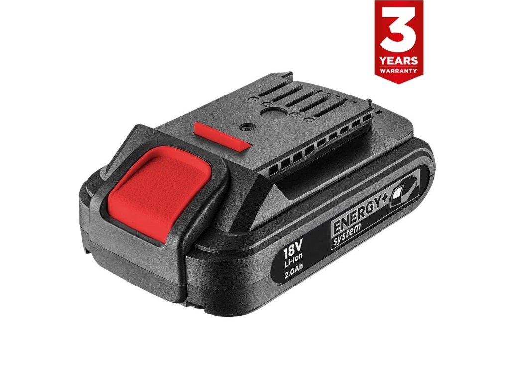 Akumulátorová baterie GRAPHITE ENERGY plus 18V Li-Ion 2,0Ah. Dobíjení bez rizika ztráty kapacity baterie. Vybavena elektronickým systémem řízení teploty a proudu během nabíjení.