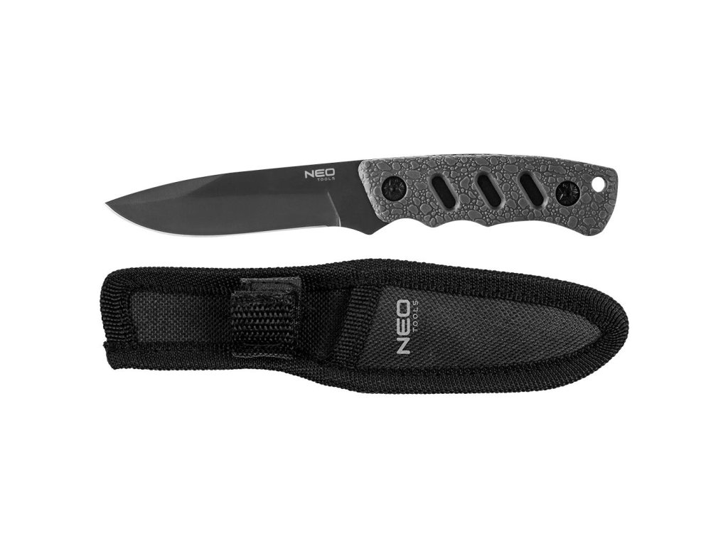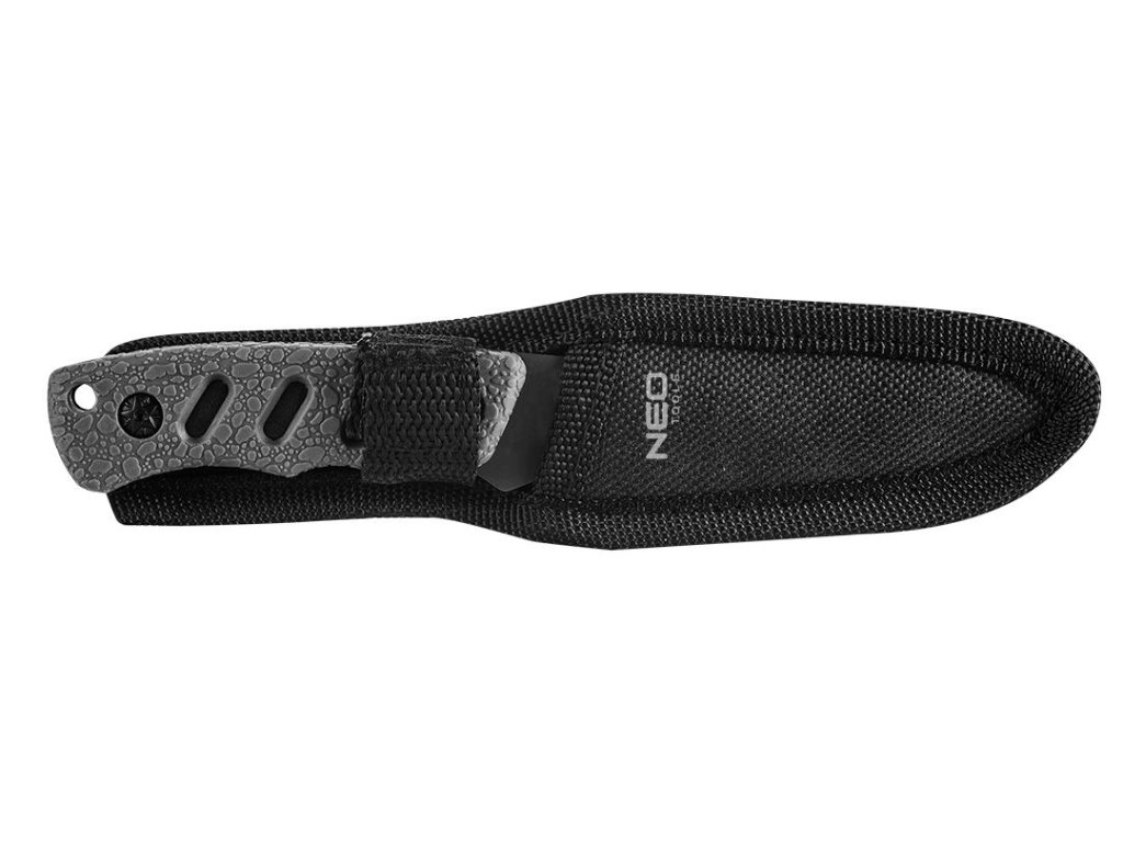 Full-tang Bushcraft nůž NEO, 16,5 cm dlouhý s 9,4 cm čepelí, vyrobený z vysoce kvalitní nerezové oceli a odolný proti mechanickému poškození. Tento nůž je nezbytný pro pěší turistiku v horách, kempování v lese nebo trekking. Čepel je vybavena rukojetí TPR pro dobrý úchop a vysokou pevnost. Nůž má nylonové pouzdro na opasek.