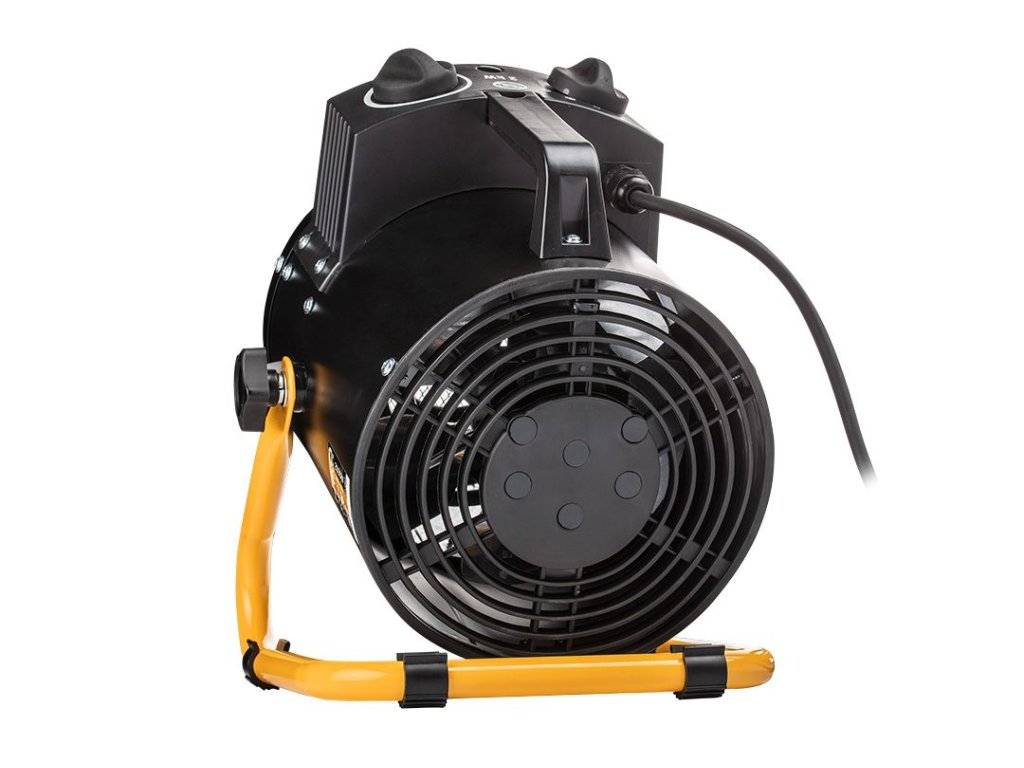 Elektrický ohřívač 90-067 je přenosný zdroj tepla určený k vytápění místností, jako jsou dílny, garáže, domácnosti a obchody. Topné těleso zařízení je vyrobeno z nerezové oceli, která zajišťuje ochranu proti přehřátí. Třída odolnosti proti vodě IPX4 umožňuje použití zařízení ve vlhkých a mokrých spojích. Ohřívač má izolovanou plastovou rukojeť pro snadné přenášení. Kovové pouzdro s práškovým nástřikem chrání zařízení před rzí. Ohřívač se vyznačuje vysokou účinností s malým půdorysem. Charakteristické vlastnosti: výkon 2kW; topné těleso: nerezová ocel; nastavitelný termostat; nastavitelný úhel nastavení; ochrana proti přehřátí; fanoušek; celokovové pouzdro; silná a trvanlivá struktura; izolovaná, bezpečná rukojeť; přenosný, volně stojící.