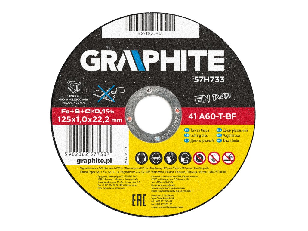 Kotouč na řezání kovů GRAPHITE díky pokročilé konstrukci a zredukované tloušťce umožňuje dvakrát rychlejší řezání. Zajišťuje vysokou úroveň bezpečnosti při práci, zejména díky souladu výrobku s normou EN12413.