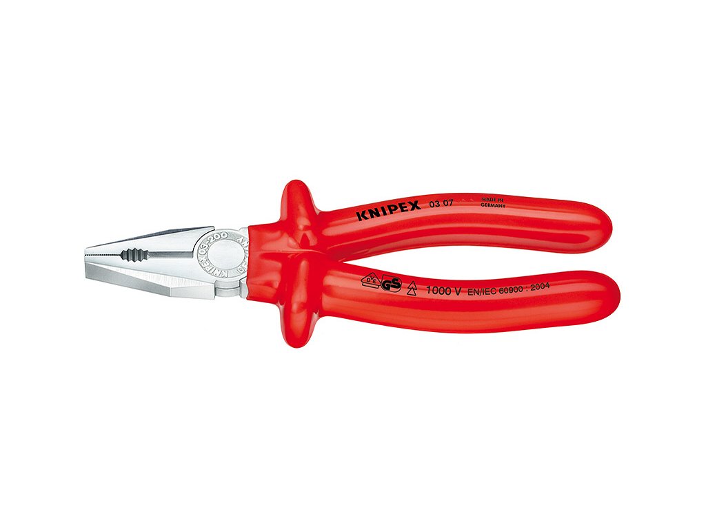 Máčené kombinačky Knipex 160mm.Se zónami pro uchopení plochého materiálu a materiálu kruhového průřezu pro mnohostranné použití. S břity pro měkký a tvrdý drát. Dlouhé břity pro silnější kabely. Břity doplňkově induktivně zakalené, tvrdost břitů asi 60 HRC, speciální nástrojová ocel, kovaná, kalená v oleji