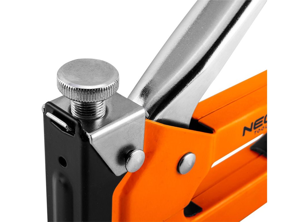 Multifunkční sešívací pistole 3 v 1, 4-14 mm, hliník, pro sponky G, L a E, 16-031, NEO TOOLS je šikovný nástroj s širokým rozsahem nastavení pro spojování materiálů různými typy sponek . Sešívací pistole je nezbytná pro profesionální a kutilské čalounické práce. Dokáže efektivně připevnit koberce, pružné podlahy a textilie ke dřevu, dřevovláknitým deskám a dalším materiálům.