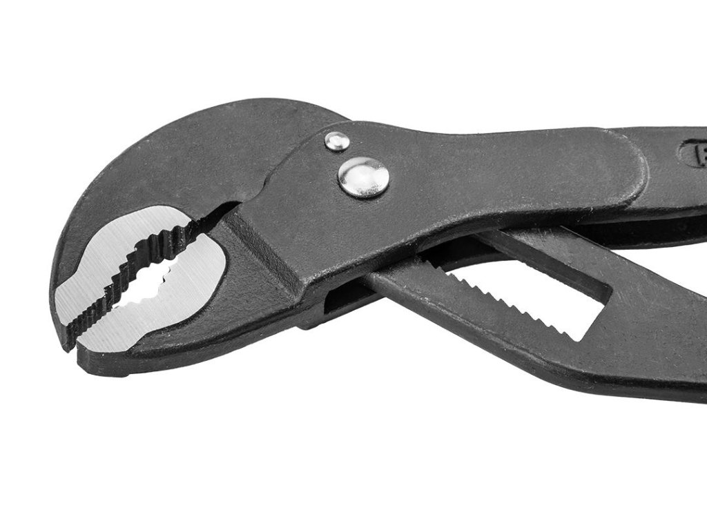 Možnost rychlého nastavení kleští vám urychlí a usnadní práci. Mechanismus umožňuje nastavit požadovanou rozteč čelistí přímo na potrubí nebo jiném prvku. Prvek stačí zafixovat jednou rukou spojením dvou ramen kleští.