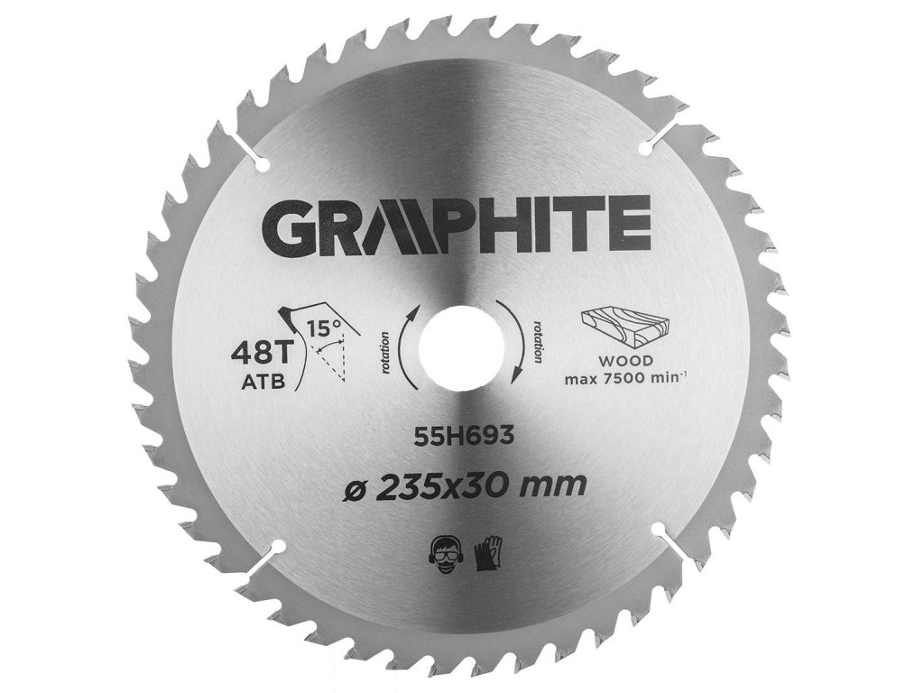 Pilový kotouč GRAPHITE (ref. 55H693) o vnějším průměru 235 mm, vyrobený ze speciální oceli C50 se zvýšenou odolností proti oděru a deformaci. Zuby z karbidu wolframu s geometrií ATB (střídavé) umožňují hrubé řezání dřeva a materiálů na bázi dřeva, jako jsou překližka, dřevotříska, MDF. Redukční kroužky, které jsou součástí balení, umožňují použití kotouče u většiny modelů řetězových pil. Značka GRAPHITE nabízí širokou škálu elektrického nářadí, které splňuje požadavky profesionálů.