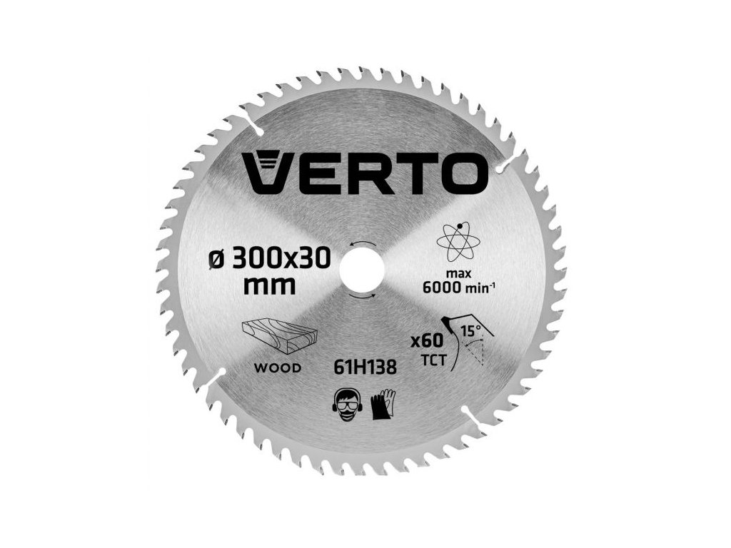 Pilový kotouč VERTO s vnějším průměrem 300mm, zmenšená tloušťka umožňuje dosáhnout vyšší řezné rychlosti. Zuby ze slinutého karbidu YG8A jsou určeny pro hrubé řezání dřeva a materiálů podobných dřevu, jako jsou překližka, dřevotříska, MDF. Díky přiloženým adaptačním kroužkům je možné kotouč použít ve více modelech pil. Značka VERTO nabízí sortiment elektrického nářadí a příslušenství pro všechny kutily.