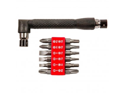 Sada bitů obsahují různé vychytávky, které nám buď rozšíří možnosti, nebo usnadní práci. To nejzákladnější co by měla bezpochyby mít je držák bitů.