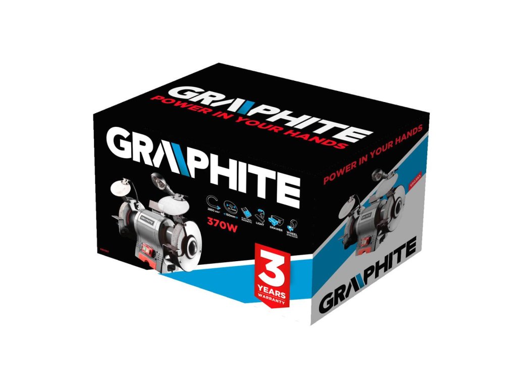 Špičková stolní bruska GRAPHITE s výkonem 370W pro obrábění tvrdých materiálů. Maximální průměr brusných kotoučů je 150 mm. Bruska je vybavena indukčním motorem s měděným vinutím. Pouzdro odolné proti poškození a vysoké teplotě, vyrobené z hliníkové slitiny. Zařízení je vybaveno spínačem s magnetickou podporou a zařízením pro vyrovnání pracovní plochy brusného kotouče. Maximální rychlost disku bez zatížení je 2950 ot / min. Kromě toho je bruska vybavena vícepolohovou světelnou lampou, zásuvkou na chladicí kapalinu a nastavitelnými kryty očí (levý kryt s lupou). Zařízení je vybaveno pružným a odolným napájecím kabelem v gumovém povlaku o délce 2 m, který je určen také pro profesionální a průmyslové aplikace, uvnitř i venku. Sada s bruskou obsahuje: lapače jisker, podpěry nástrojů, zarovnávací kotouč a sadu šroubů, šroubů a podložek. Soulad s evropskými normami zajišťuje certifikát CE.